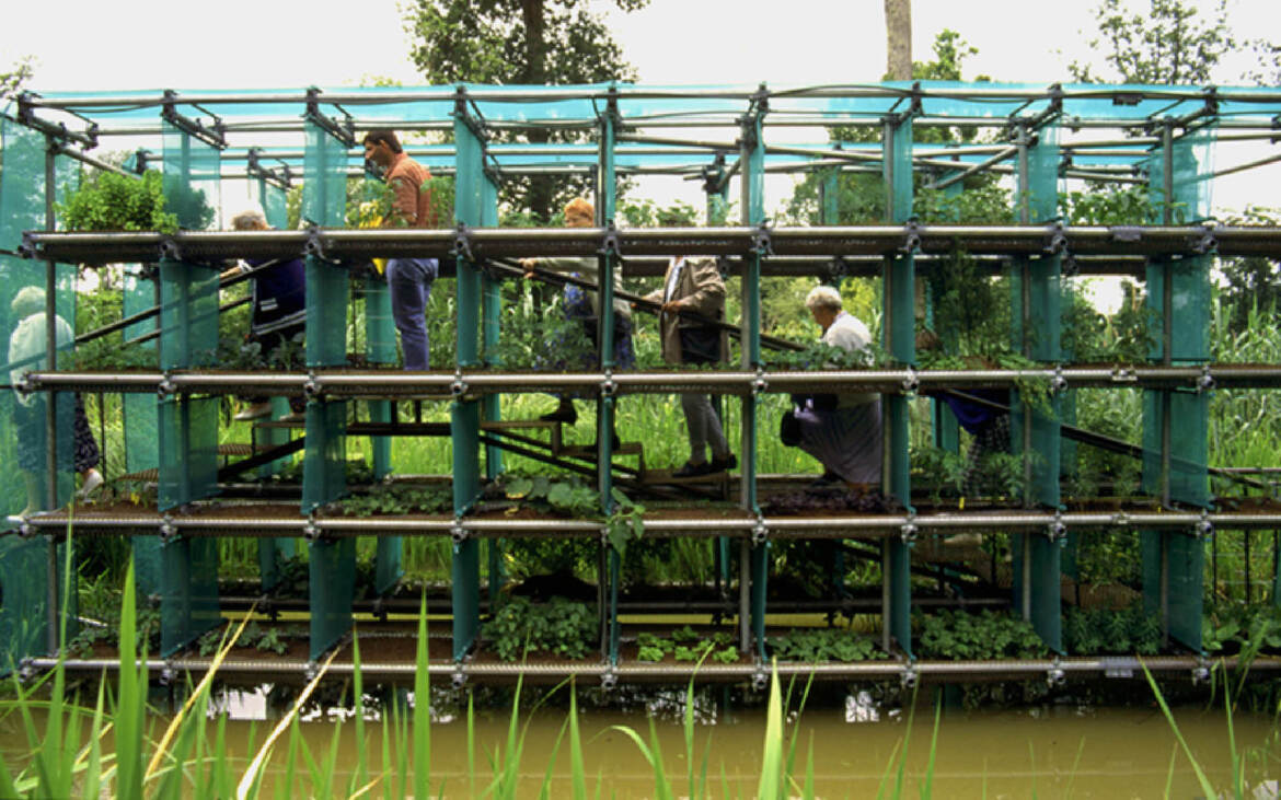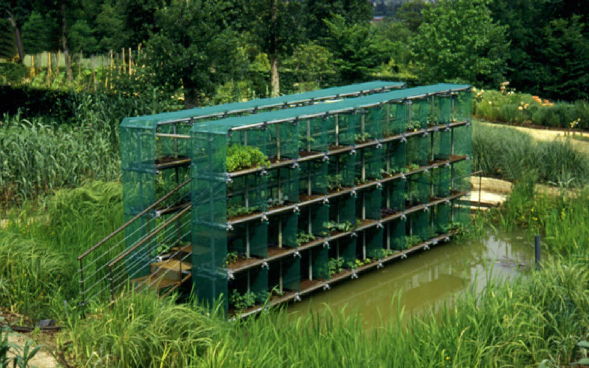 Op de internationale tentoonstelling van experimentele tuinen rond het kasteel van Chaumont heeft Arc2 architectuur in samenwerking met Mosaïque Architecture een tuin gerealiseerd die onafhankelijk van de omgeving kan functioneren: de planten groeien op verschillende etages op een bedding van glaswol en worden door middel van een irrigatiesysteem van water en voedsel voorzien. Deze verticale tuin drijft als een ark van Noach in het water en staat vol met groenten en kruiden.