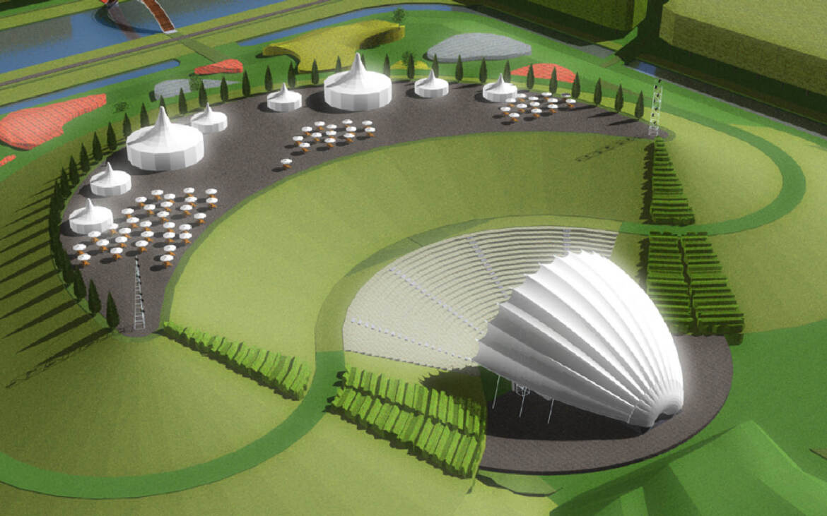 In een recreatiegebied in Almere is een ontwerp gemaakt voor een amfitheater. De opzet is geïnspireerd op wat men in de Verenigde Staten een 'shed' noemt: een groot openluchtlocatie met podium in een heuvelachtige setting. Door het landschap in verschillende ringen vorm te geven kunnen evenementen en concerten met verschillende omvang worden georganiseerd: 3.000 tot 15.000 bezoekers kunnen worden ontvangen. Per evenement worden de voorzieningen opgebouwd: van podium tot horeca, kassa's en tribunes.