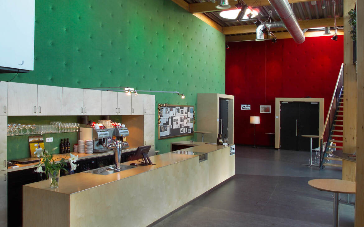 - Het gebouw heeft een duurzaam klimaatconcept: De betonnen vloer wordt opgewarmd met aardwarmte middels een warmtepomp. De foyer wordt geheel verwarmd door dit systeem;