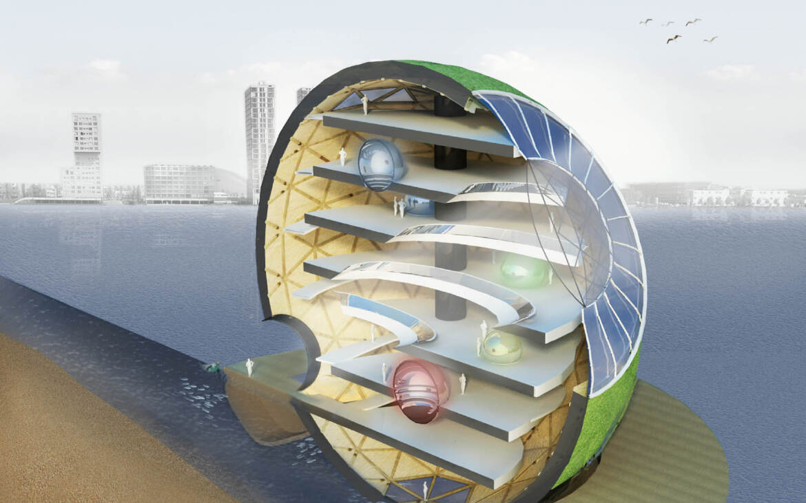 Voor de Floriade 2022 in Almere heeft Arc2 architectuur het GreenEye Expo ontworpen: een drijvend informatie- en expositiecentrum over het thema duurzaamheid. Het paviljoen vormt het centrale onderdeel van een groeiend netwerk van steigers met een haven, restaurant, hotel en spa. GreenEye Expo draait 24 uur met de zon mee waardoor de zonnecellen in de iris maximaal energie kunnen produceren. De lens van het oog kan zelfs worden gesloten of geopend om de zonnewarmte binnen te laten of buiten te houden.