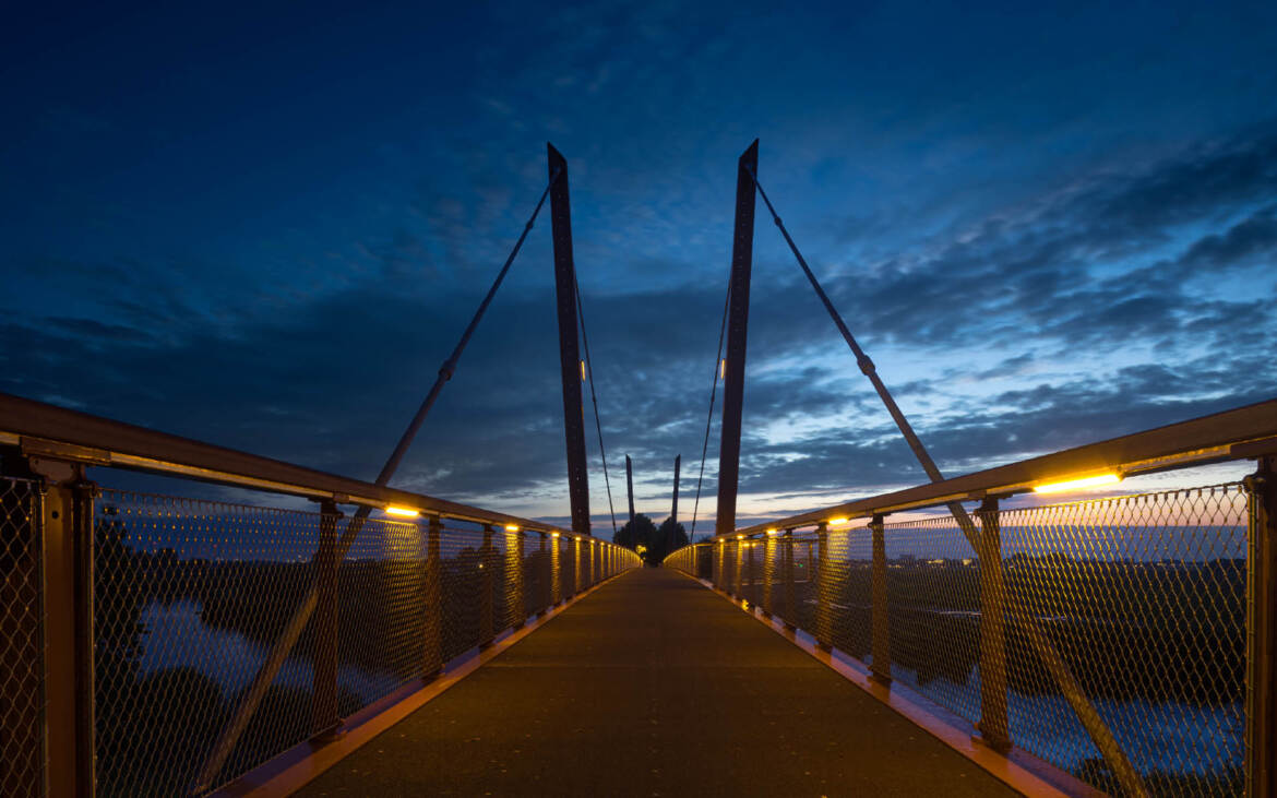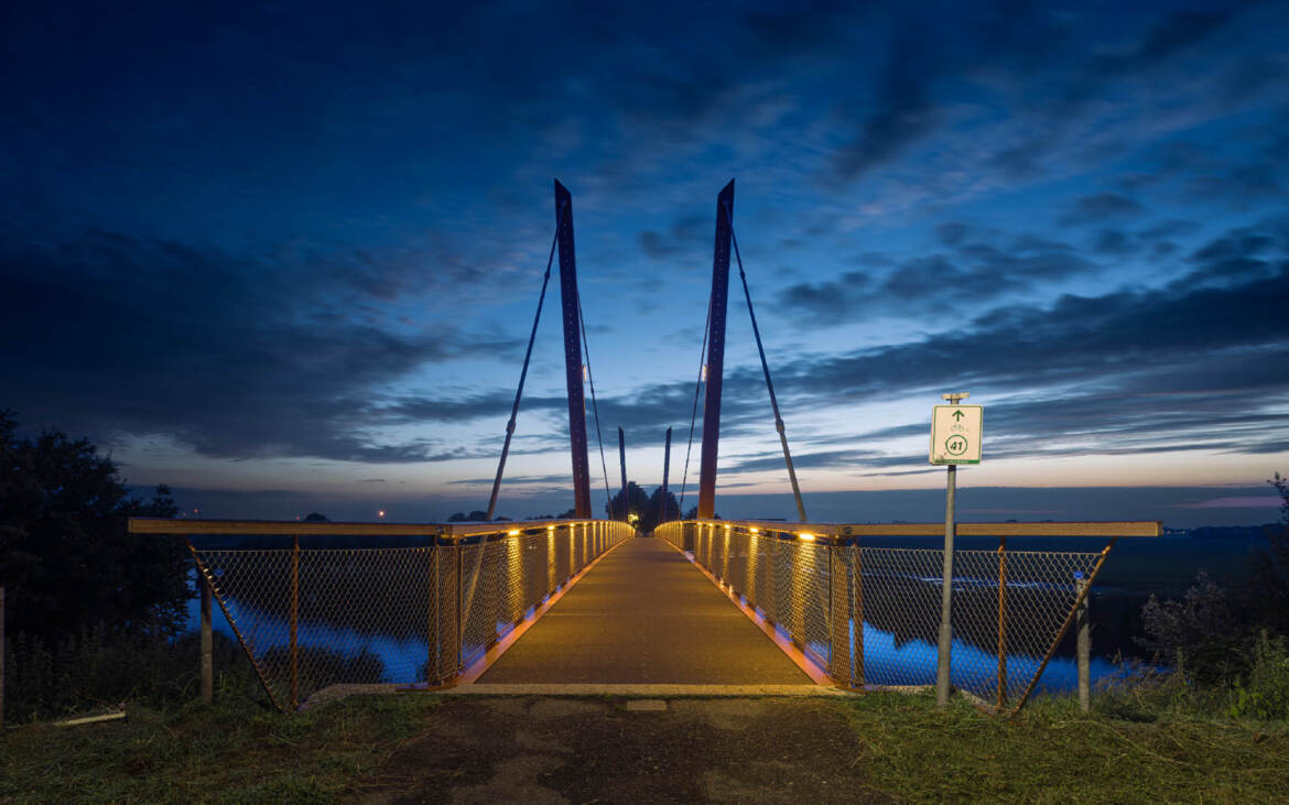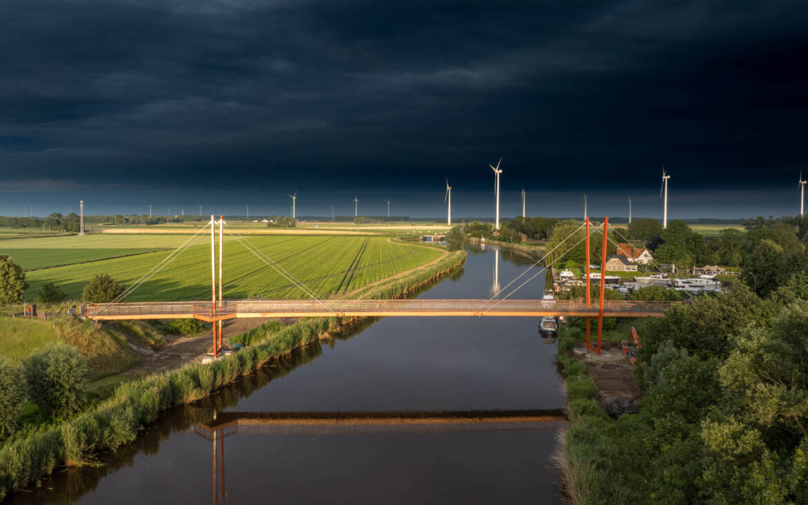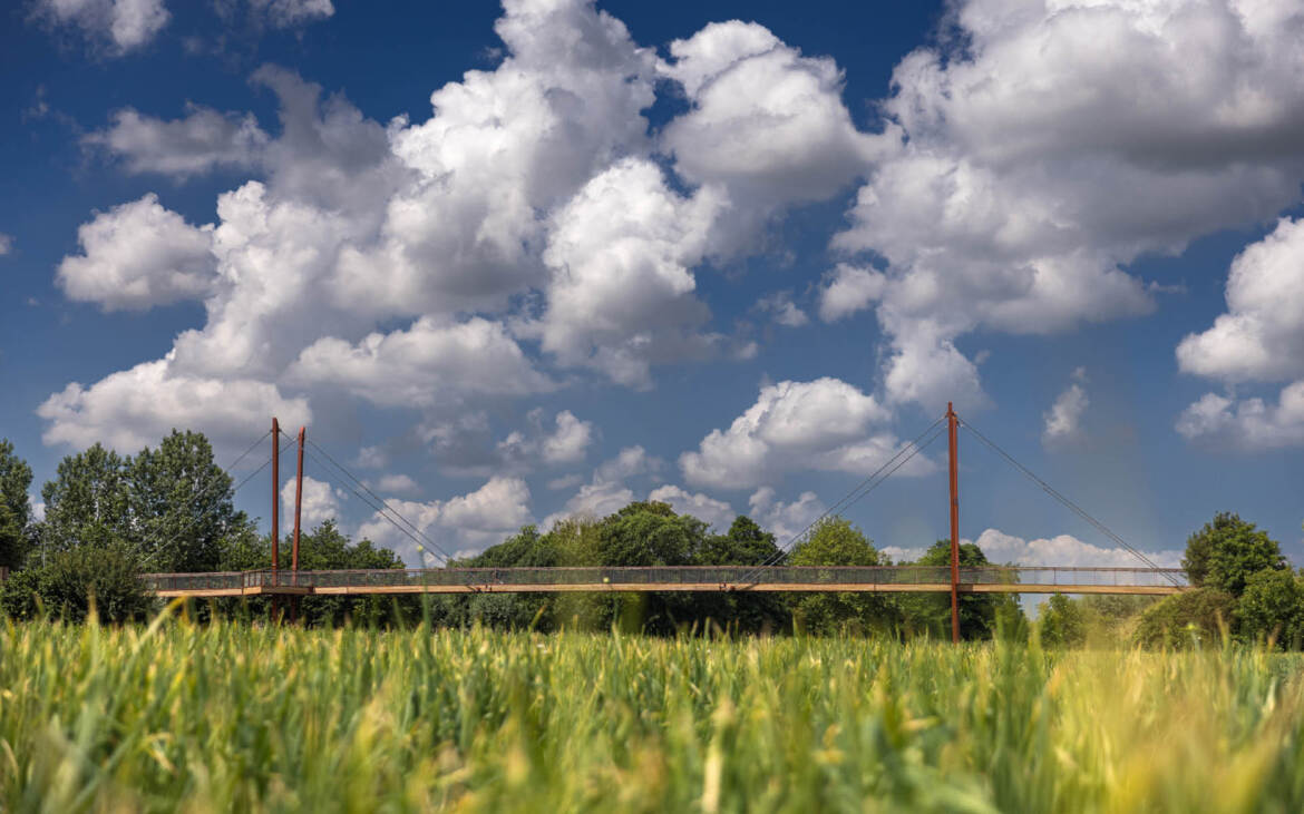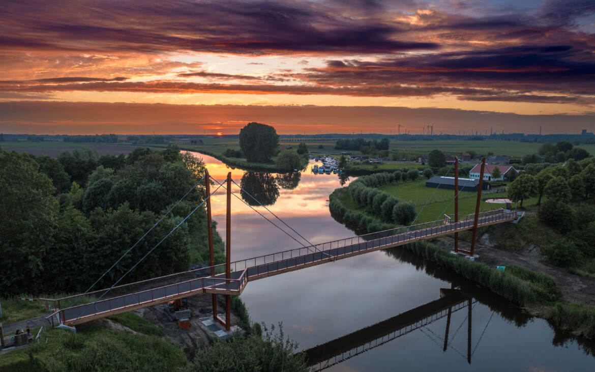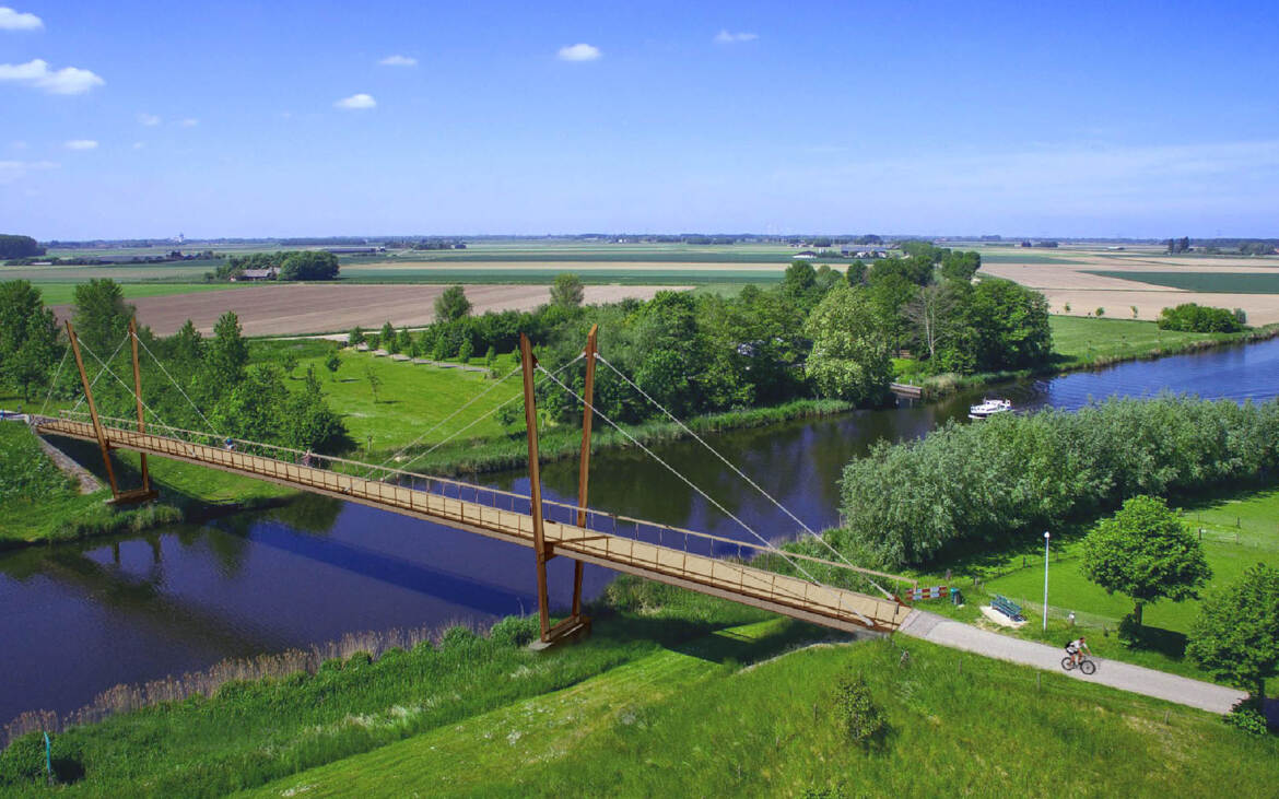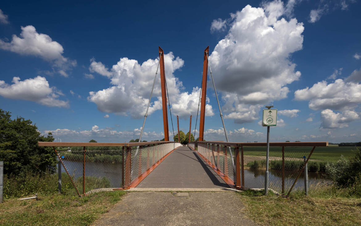 In de basis is het ontwerp van de brug op een sobere en functionele wijze opgezet en maakt de oversteek op de meest efficiënte wijze door middel van een stalen tuiconstructie op basis van de bestaande funderingspunten. Het ontwerp is een eigentijdse versie van de oude brug met een elegantere en transparantere en circulaire vormgeving en detaillering maar met behoud van het silhouet en kwaliteiten als landmark. De brug heeft een recreatief karakter door de veelvuldige toepassing van hout in de afwerking die het verblijf op de brug aangenaam maken: een houten dek, een houten invulling van de pylonen en een houten handregel die plezierig is om vast te houden en op te leunen. Leunend op de handregel kunnen de gebruikers genieten van het spectaculaire uitzicht over het landschap. De transparante vormgeving van de leuning versterkt de beleving dat men één geheel vormt met de prachtige groen-blauwe wereld van de rivier. Enkele goene led-spots zorgen voor een subtiele verlichting van de binnenzijde van de pylonen waarmee de brug ook in de avond zichtbaar is. De brug bestaat voor maar liefst voor 80% uit hergebruikte materialen.