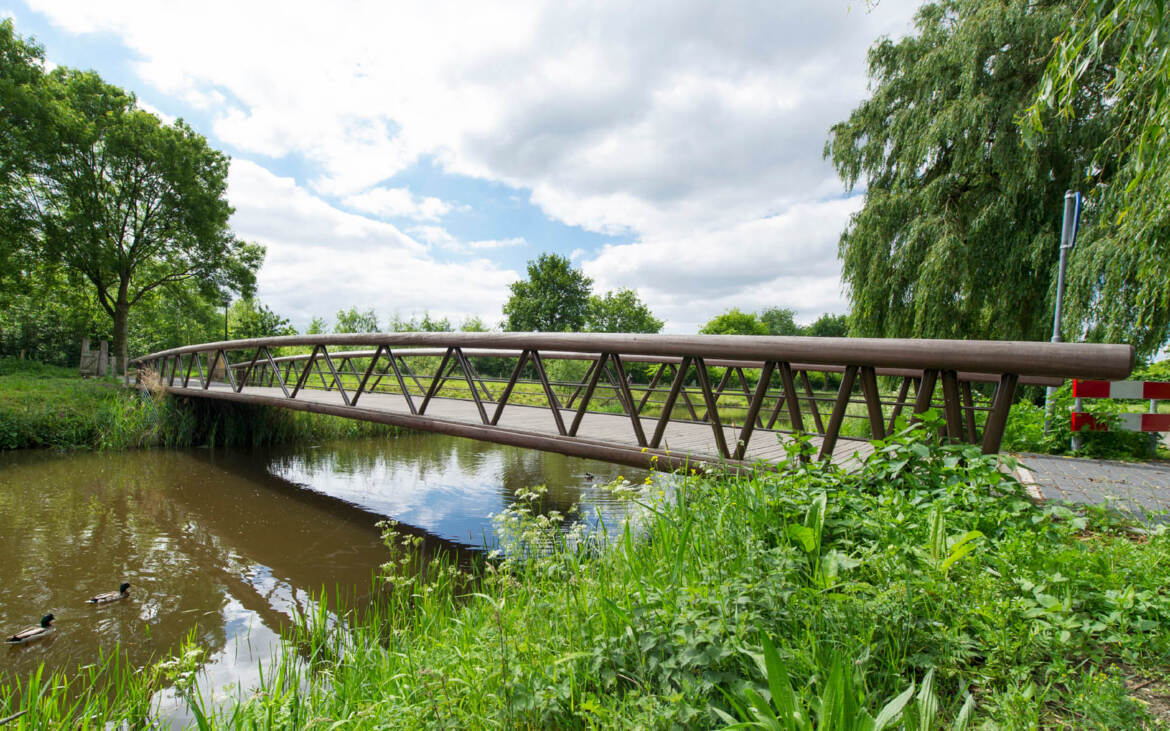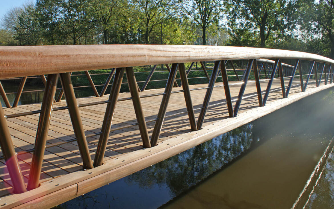 Langzaamverkeersbrug met hybride hout-staal constructie
