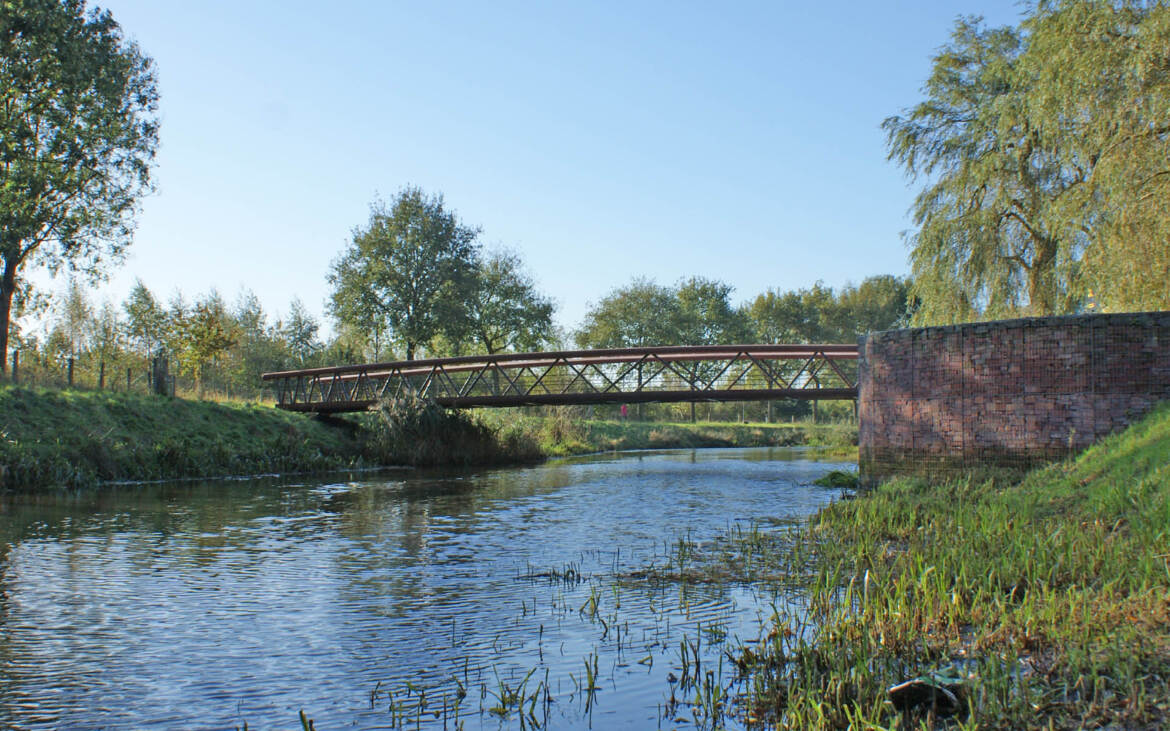 - De vakwerkligger als onderdeel van de leuning maakt het mogelijk om een zeer slank dek te maken waardoor er goed zicht onder de brug blijft;