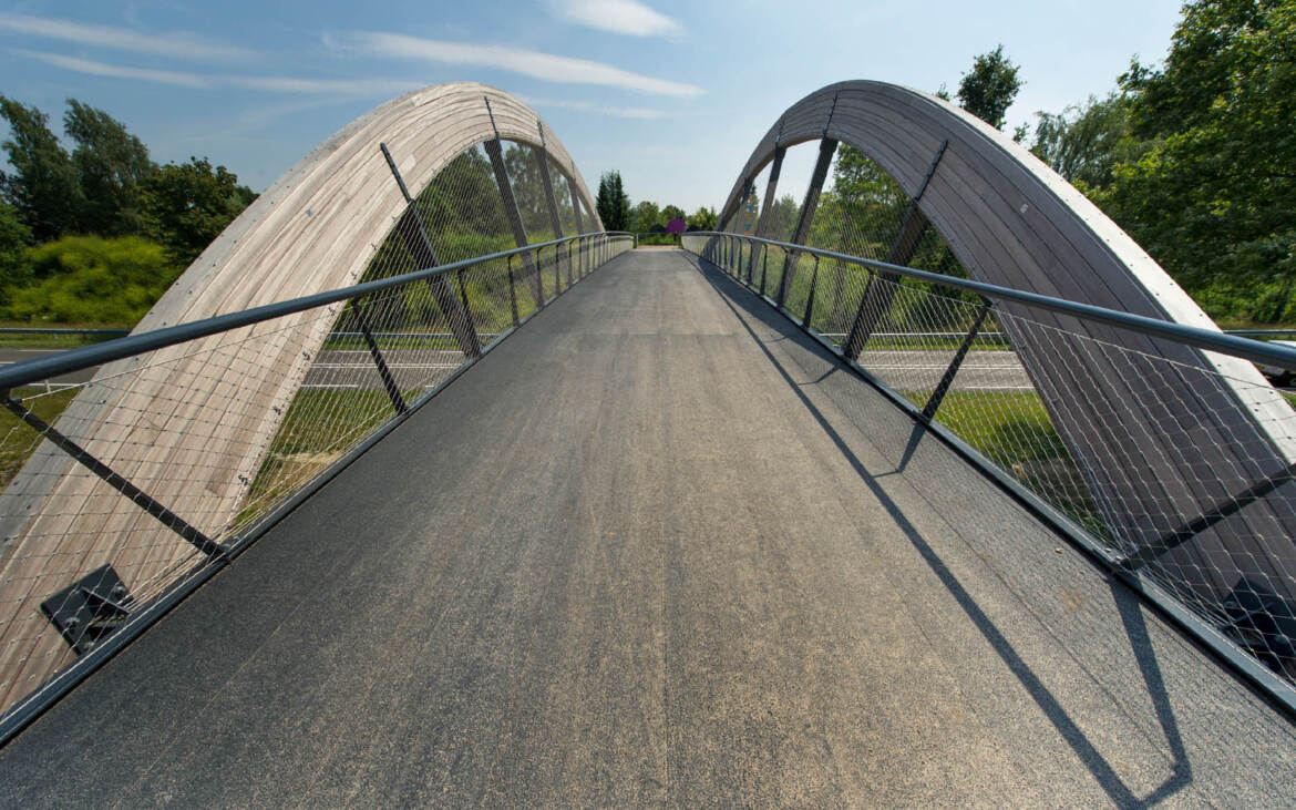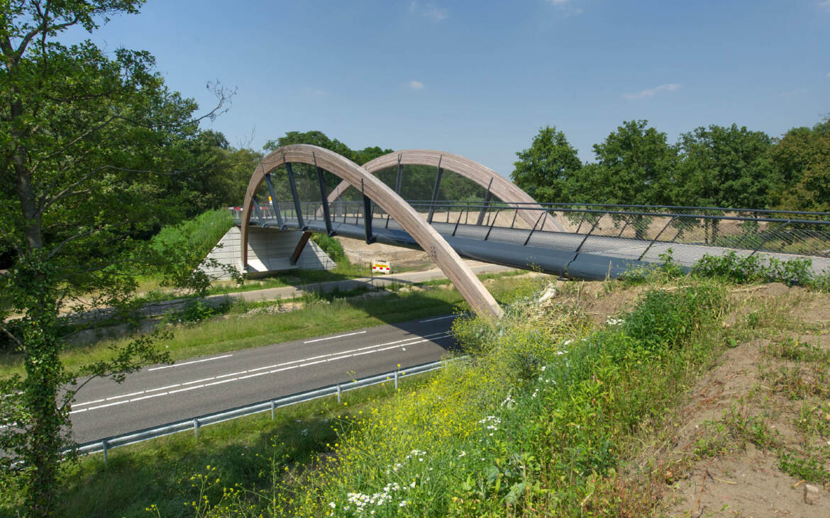 Als een vlinder ontvouwt de gelijknamig brug haar vleugels voor langzaamverkeer. De VlinderBrug overbrugt met een elegante sprong een drukke provinciale weg. De vorm van de brug refereert aan het vlinderlogo van Oost Gelre. Arc2 architectuur bedacht twee houten bogen met een opgespannen net, die als het ware de twee vleugels vormen van een reusachtige vlinder die bij Lichtenvoorde op de N18 is neergestreken. Het baken in het landschap maakt verbinding met de natuur.