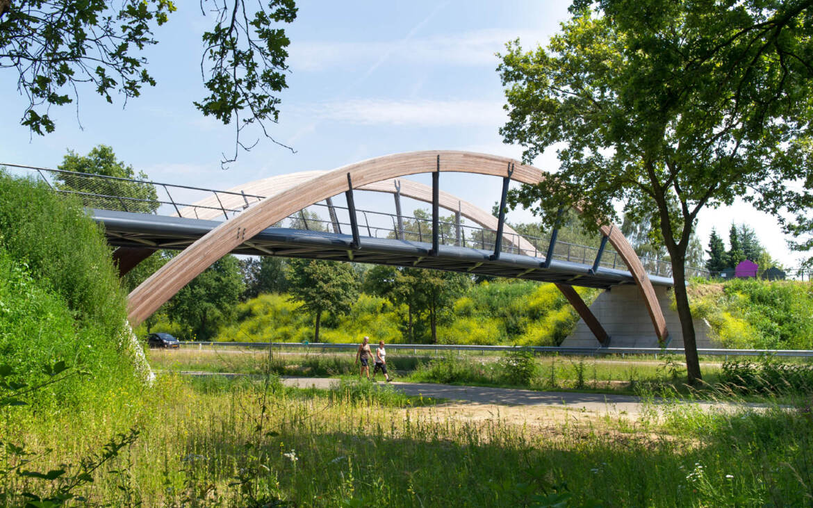 De VlinderBrug is een elegante brug met een herkenbare vormgeving. Het landschappelijke profiel wordt op een heldere wijze door de brug doorsneden. Vanaf de VlinderBrug is het omringende landschap goed beleefbaar en zichtbaar. De voet- fietsbrug vormt door het opvallende ontwerp een herkenningspunt voor de passant, een baken in het landschap. Tegelijkertijd maakt de brug in de andere richting een verbinding met de natuur. Dit is verbeeldt in de vormgeving waarin wordt gerefereerd aan een vlinder en de toepassing van het natuurlijke materiaal hout in de boog. De brug heeft een slanke vormgeving en heldere detaillering. Met het materiaalgebruik wordt onderscheid gemaakt tussen de draagboog met hangers en het dek dat er elegant tussendoor schiet.