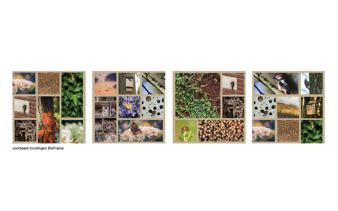 BioFrame is een breed toepasbaar klimaatadaptief en natuurinclusief concept dat een positieve bijdrage levert aan de biodiversiteit op een specifieke locatie. Het draagt bij aan een gezonde leefomgeving waarbij hittestress wordt vermeden. Het modulaire frame kan afhankelijk van de gestelde eisen aan esthetische kwaliteit, functie, onderhoud en duurzaamheid worden gematerialiseerd in een biobased materiaal of een ander stevig en puur materiaal als bijvoorbeeld cortenstaal. BioFrame is geschikt voor de toepassing van verticaal groen waarbij de klimplanten wortelen in de volle grond. Het opgenomen groen, zitelementen, nestkasten en bijenhotels maken het frame locatiespecifiek. Het element kan hierbij deels of volledig worden ingezet als zonwerende schil. BioFrame is zowel toepasbaar in de infrastructuur voor bijvoorbeeld een brugleuning of als tweede huid in de gebouwde omgeving.