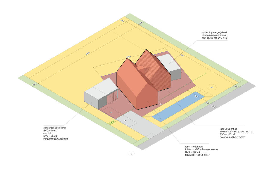 In het ontwerp worden de toekomstige verkeersverbindingnen gevormd door verschillende gevelopeningen waaronder een dakkapel op de eerste verdieping. Fase 2 wordt gerealiseerd middels een tweelinghuis.