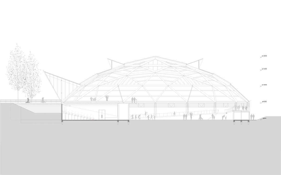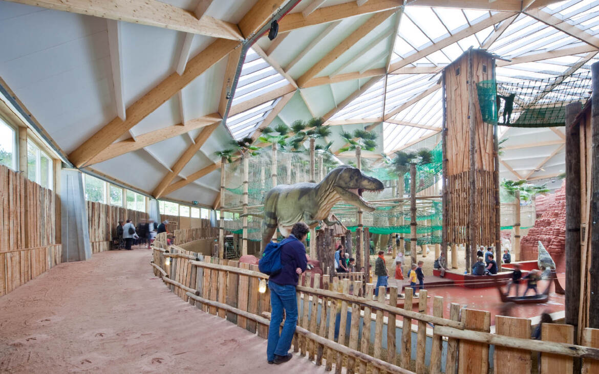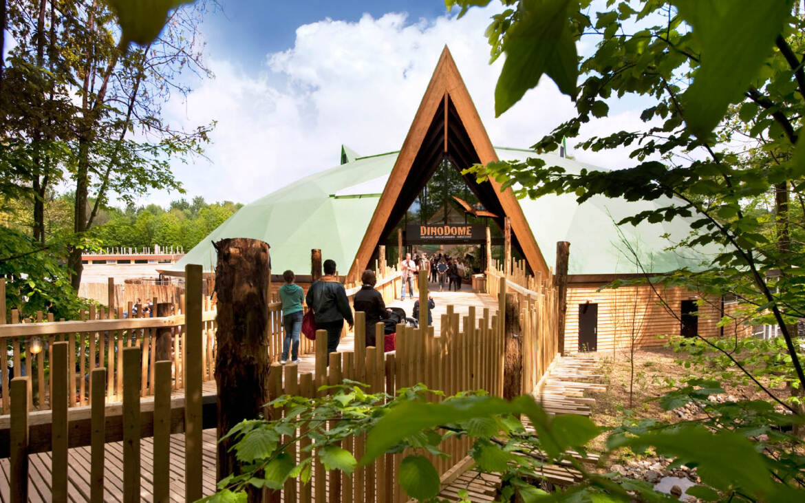 De DinoDome in het dierenpark GaiaZoo Kerkrade is Europa’s grootste indoor speeltuin. Met een houten geodetische koepel van 56 meter in doorsnede is het 2500 vierkante meter grote speelpaleis op een elegante wijze overdekt. Als een ster aan de hemel zorgt het transparant uitgevoerde daklicht in de top voor een sprookjes-achtige sfeer. Een hellingbaan verbindt de zones met het doolhof, waterpartij, horecaterras en oerwoud. Onder de hal bevinden zich in de kamers van een nautilusschelp het theater en de feest- en congreszalen.