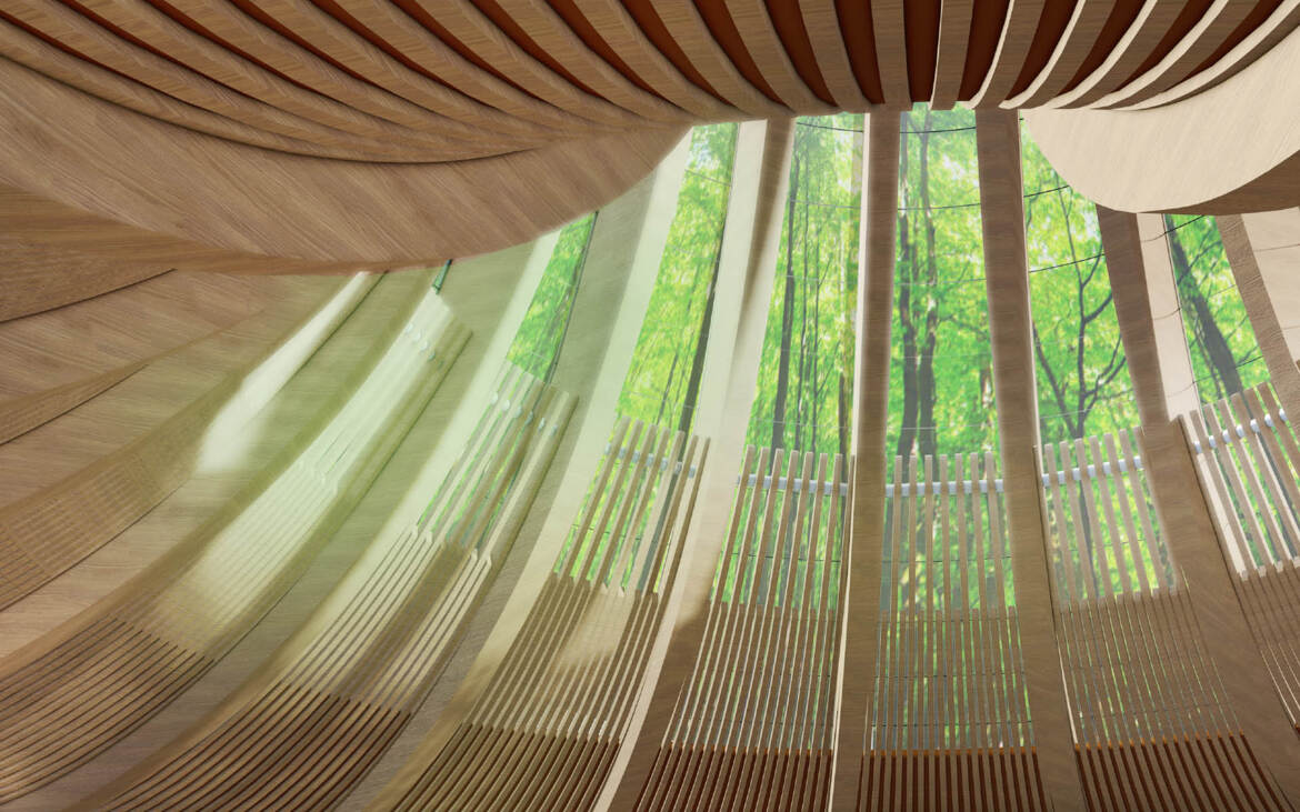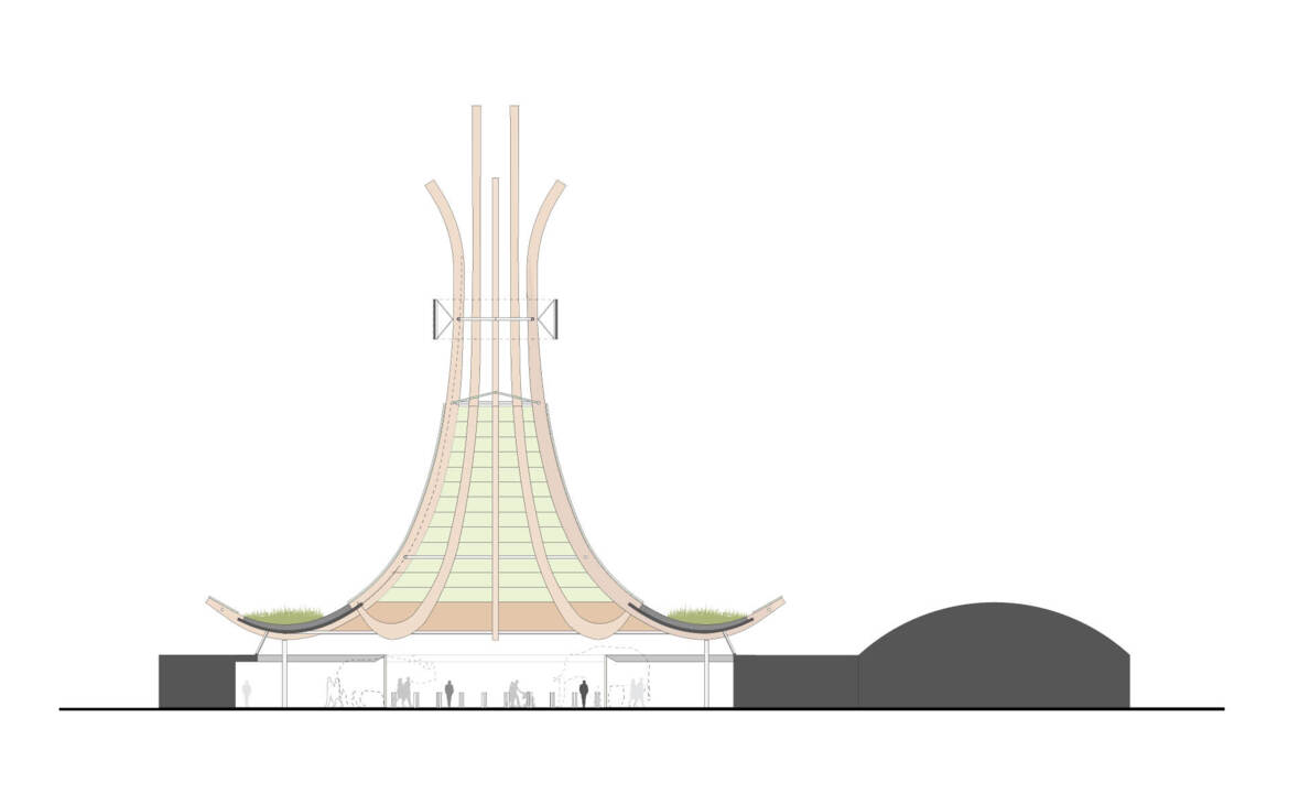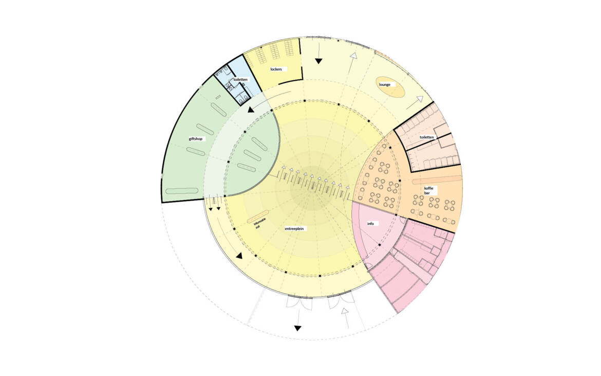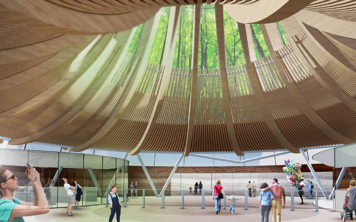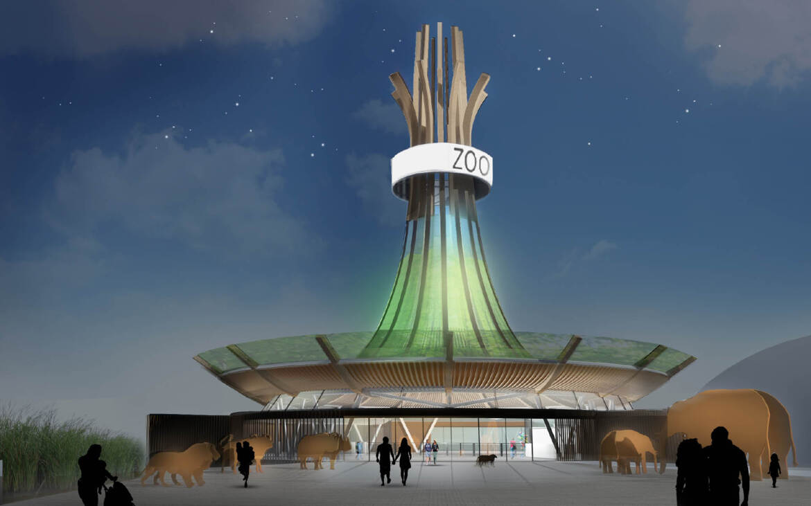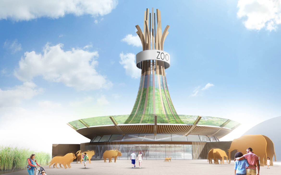 Arc2 architectuur heeft een ontwerp gemaakt voor een nieuwe hoofdentree van een dierentuin. Een eigentijds ontwerp voor een aangename entreehal met beheersbaar binnenklimaat. In het ontwerp van de entree is gebruik gemaakt van de bestaande (omliggende) bebouwing. De indeling hiervan wordt herzien op nieuwe behoeften met een heldere routing voor de inkomende en uitgaande bezoekers en het personeel. De overkapping bestaat uit een samengestelde FSC houten constructie. De organische structuur volgt de vorm van een karaktiekeristieke oerboomstam gematerialiseerd in houten gelamineerde spanten en lamellen. De structuur wordt bekleed met koud gebogen glazen panelen met daarop een print van het bladerdek van een tropisch regenwoud. Voor (de bekleding van) het interieur wordt gebruik gemaakt van biobased materialen met onder meer wanden uit gestampte aarde.
