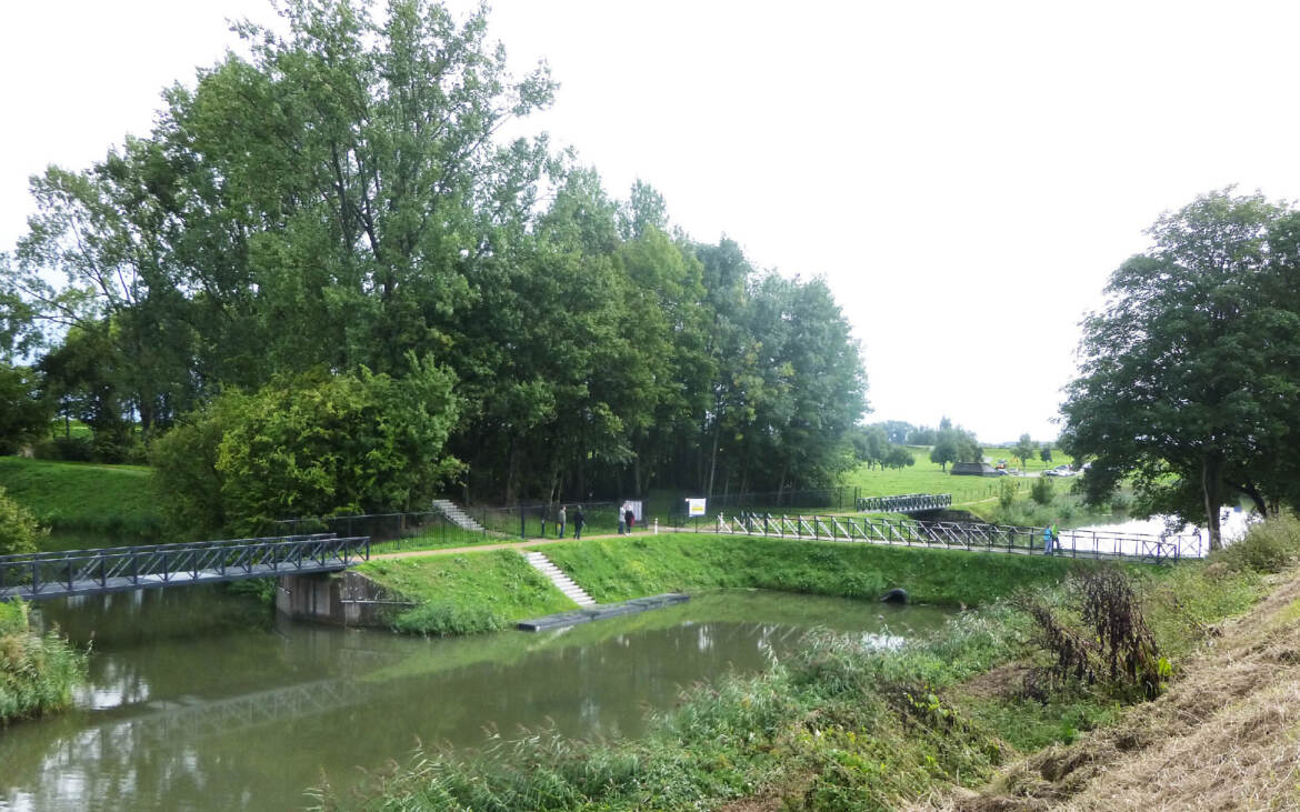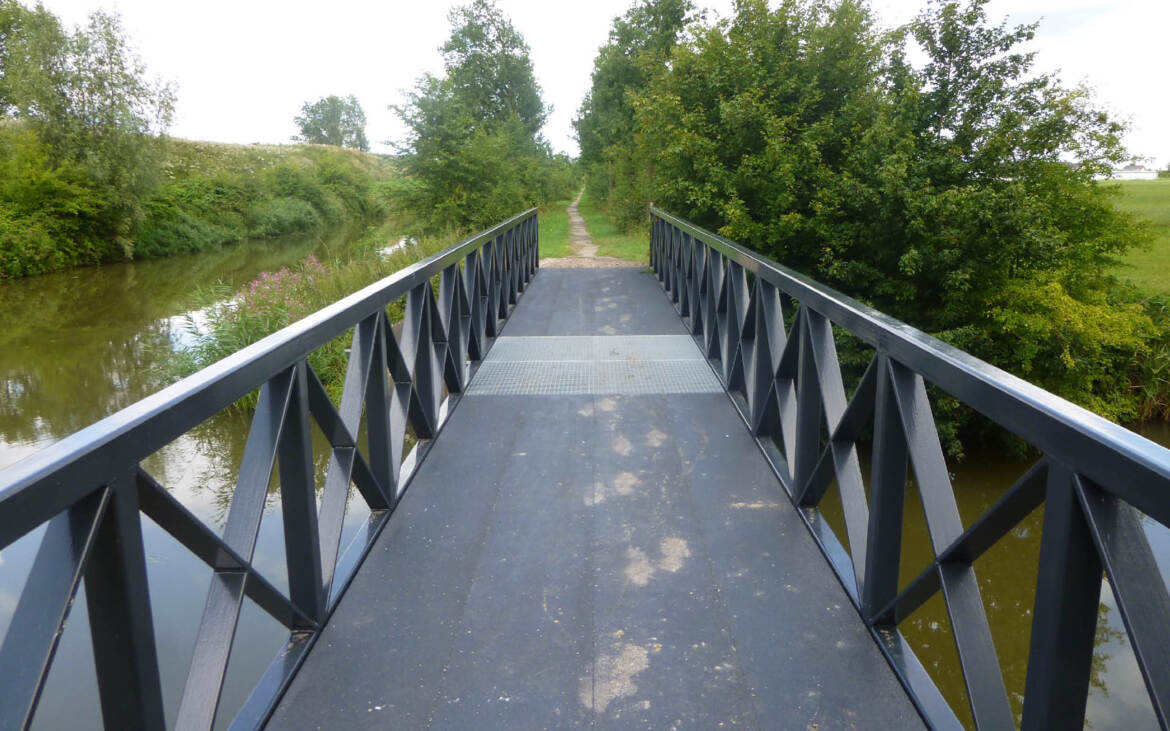De Lunetbruggen vormen de nieuwe verbindingen naar het karakteristieke landschap van Fort Lunet a/d Snel in Schalkwijk. Voor de opzet van de bruggen is teruggegrepen op de bruggen uit 1874. Deze bruggen waren uitgevoerd in een lichte draagconstructie en hadden in het midden een gedeelte dat kon worden verwijderd. Wij hebben hierop een moderne variant ontworpen met een staalconstructie en een vvk dek. De delen van de bruggen die in vroeger tijden konden worden verwijderd zijn in het nieuwe ontwerp op een afwijkende wijze vormgegeven door middel van een transparant rooster. Het nieuwe hekwerk die de entree van de lunet markeert wordt in dezelfde vormentaal als de bruggen ontworpen. Zo vormen hekwerk en bruggen onderdeel van dezelfde familie. In het hekwerk bevindt zich een grote entree ten behoeve van de toegang naar de kazerne en een kleinere loopdeur voor de toegang van het klompenpad. De entree van de lunet heeft straks weer de heldere symmetrie met hekwerken en leuningen die het in 1882 kenmerkte. Als recreatieve toevoeging wordt ook een steiger met taludtrap gerealiseerd bij de entree.