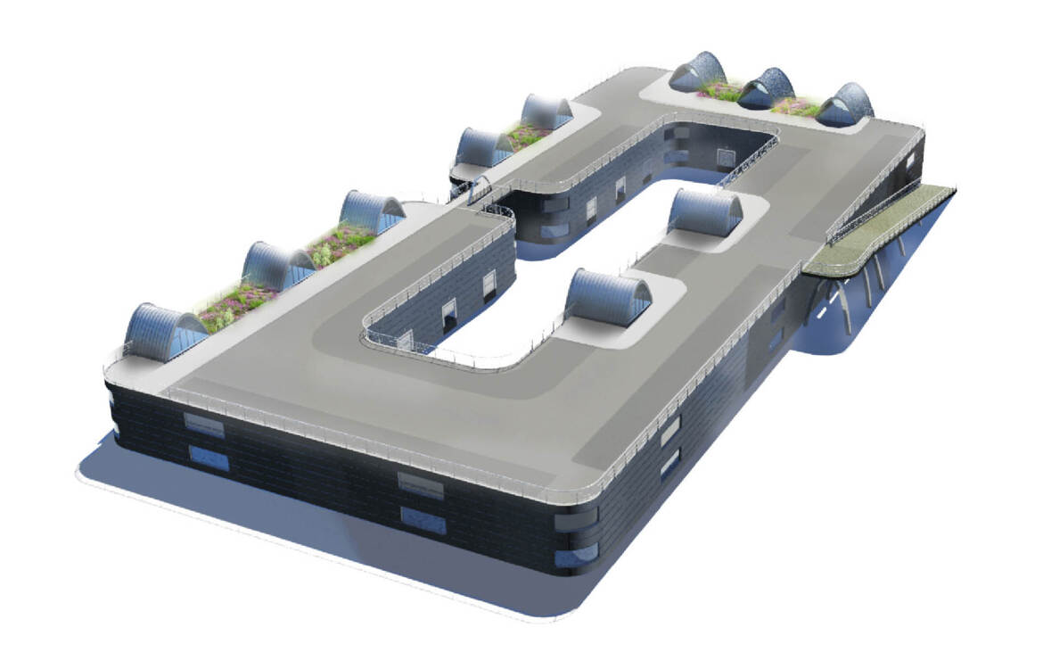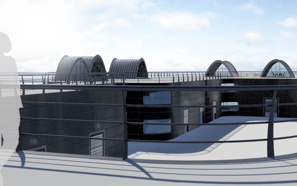 De President is een bedrijfsverzamelgebouw met parkeren op het dak. Dit was het antwoord op de stedenbouwkundige randvoorwaarde die door de gemeente werd gesteld om het parkeren inpandig op te lossen. De grote oppervlakken zijn in prefabbeton ontworpen, de entrees en en kantoorruimten zijn onder gebracht in verticale volumes die een verbinding maken tussen parkeerdak en begane grond.