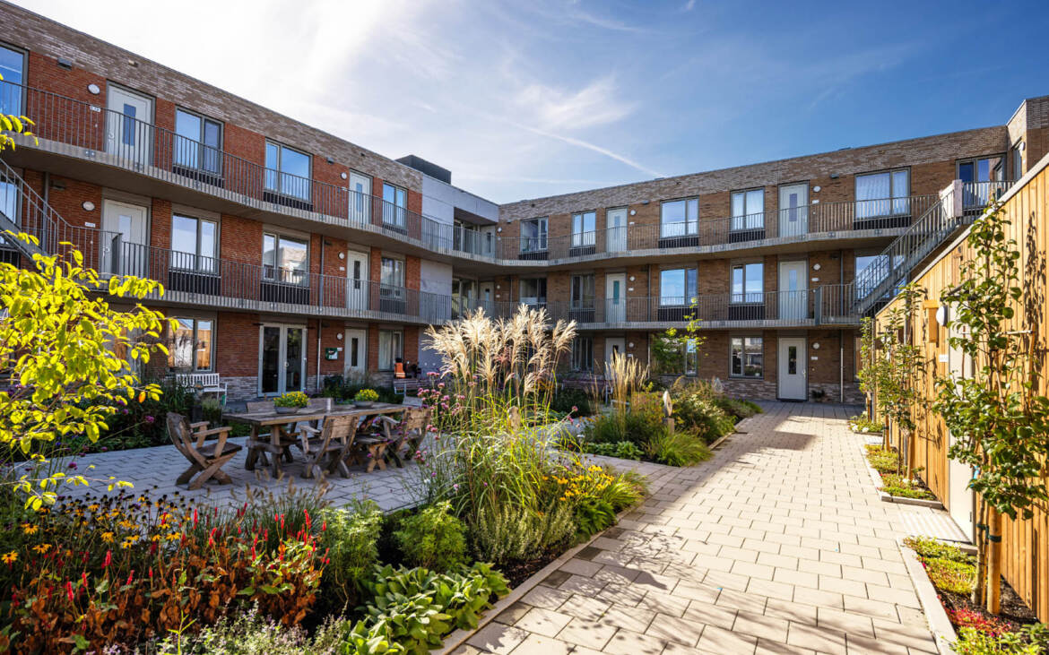 Centraal in het project is een binnentuin ontworpen waar de bewoners elkaar kunnen ontmoeten. Een gemeenschappelijke huiskamer ligt direct aan de binnentuin. De zigzagvormige galerijen bieden plek voor een zitje of plantenbak en vergroten het zicht op de binnentuin en de andere galerijen. Op deze manier wordt de sociale interactie en betrokkenheid vergroot door het architectonisch ontwerp.