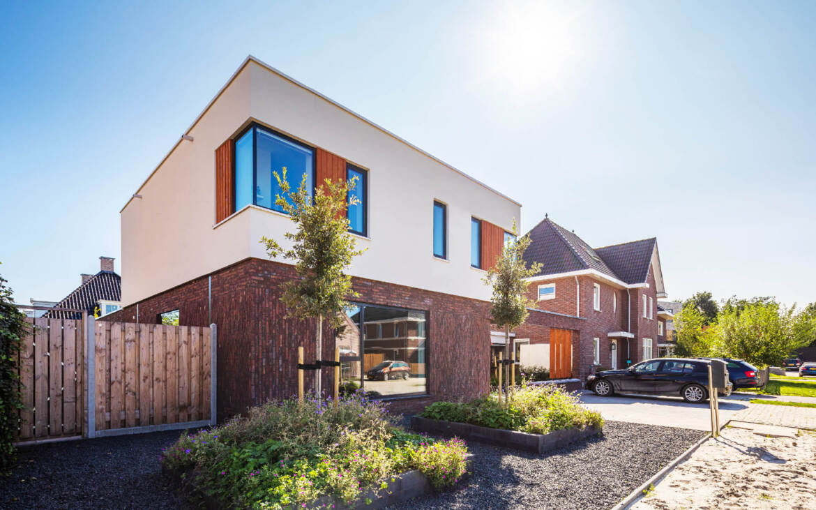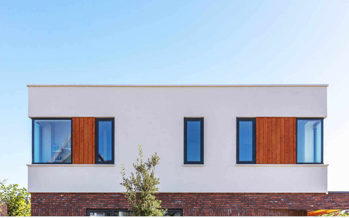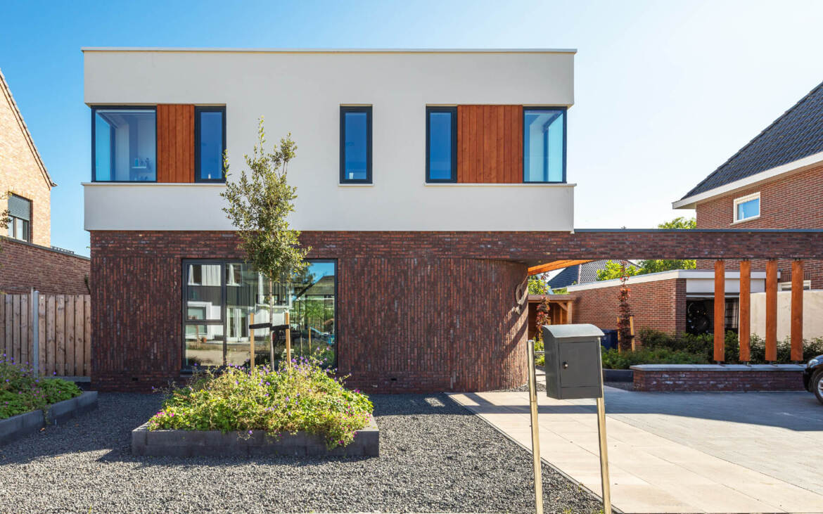 Arc2 architectuur heeft een ontwerp gemaakt voor een comfortabele villa in Vogelhorst Almere. Het woonhuis bestaat uit twee lagen met een karakteristieke plint. Dit element creëert in de context van de kavel een intieme en beschutte plek voor de bewoners, de schil markeert de overgang tussen publieke en private ruimte en vormt door de grillige materialisering een contrast met de glad gestucte verdiepingslaag. De afgeronde hoek in de buitenwand geleid de bezoekers richting de entree van het woonhuis.