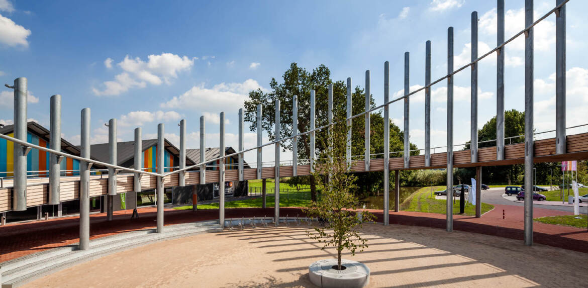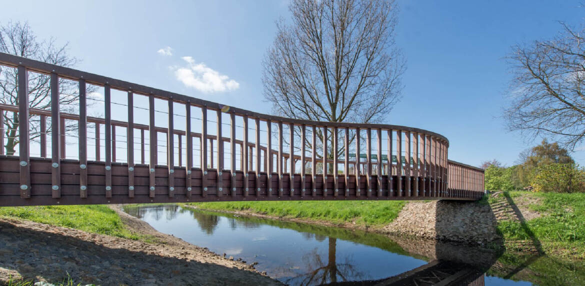- BalkonBrug Aalten - Biobased materiaal FSC hout in hekwerk, brugrand en leuning;